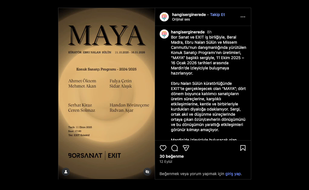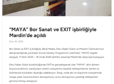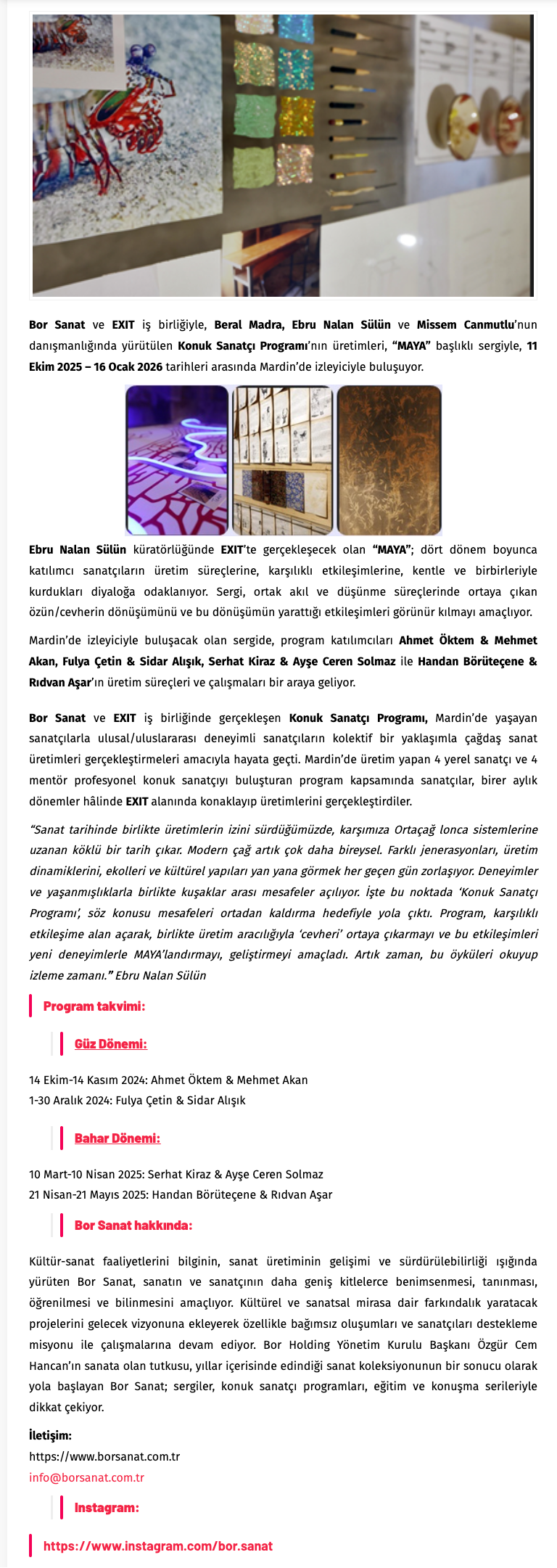 Eser Adı: Bor Sanat ve EXIT İş Birliğinde "MAYA" Sergisi