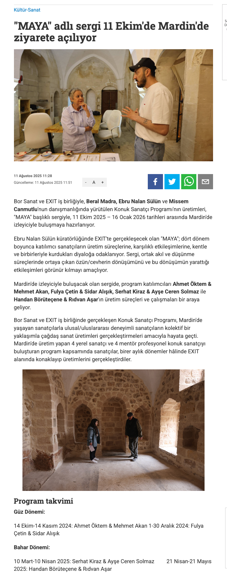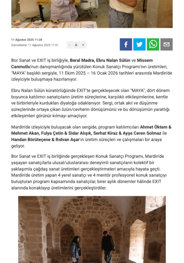 Eser Adı: "MAYA" Sergisi 11 Ekim'de Mardin'de Ziyarete Açılıyor