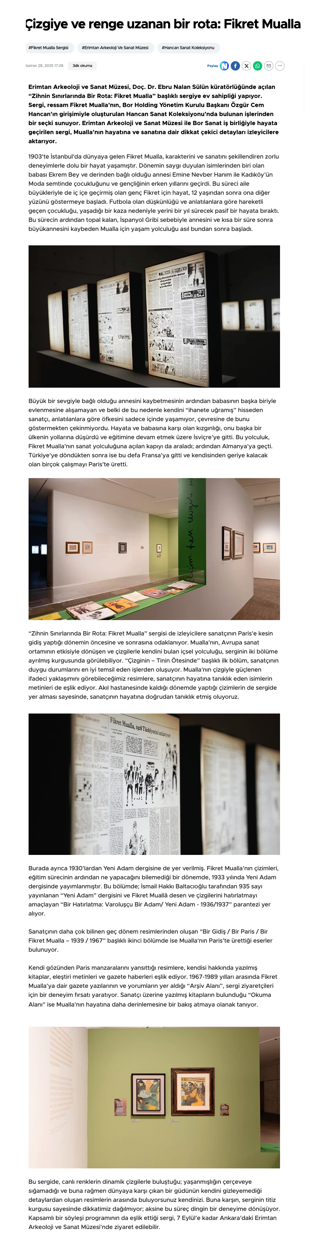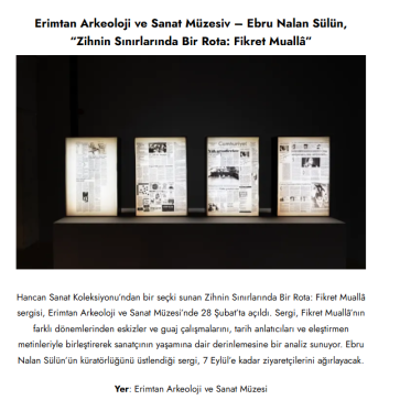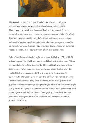 Eser Adı: Erimtan Arkeoloji ve Sanat Müzesi ile Bor Sanat’tan Fikret Mualla sergisi