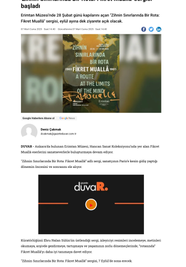 Eser Adı: Mualla'nın rotasına bir kılavuz: "Zihnin Sınırlarında Bir Rota: Fikret Mualla" Sergisi