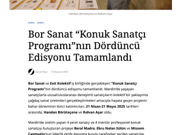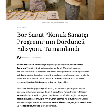Eser Adı: Bor Sanat "Konuk Sanatçı Programı"nın Dördüncü Edisyonu Tamamlandı