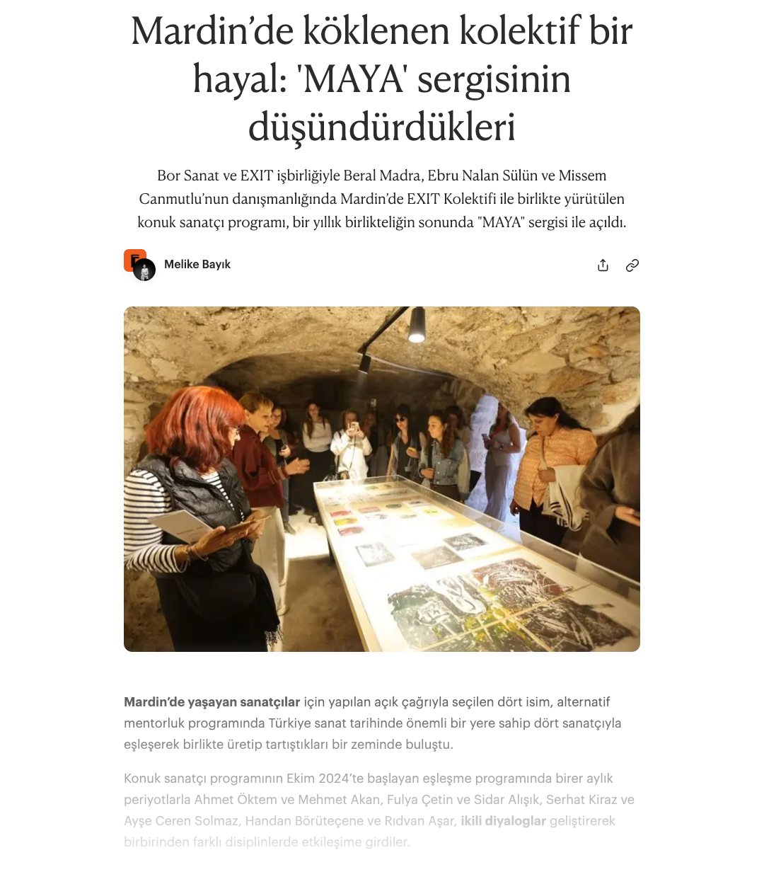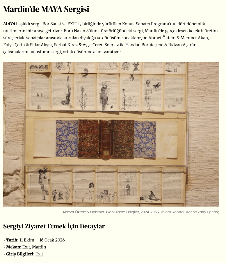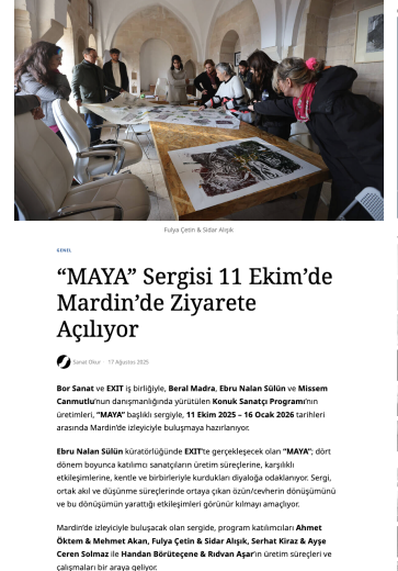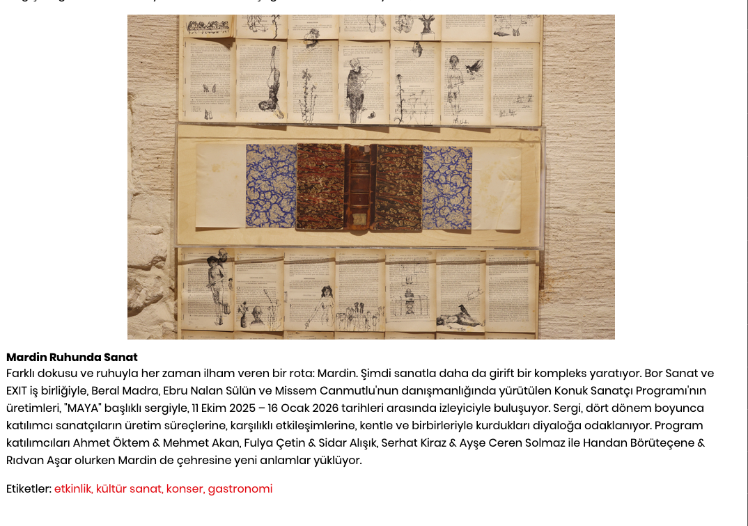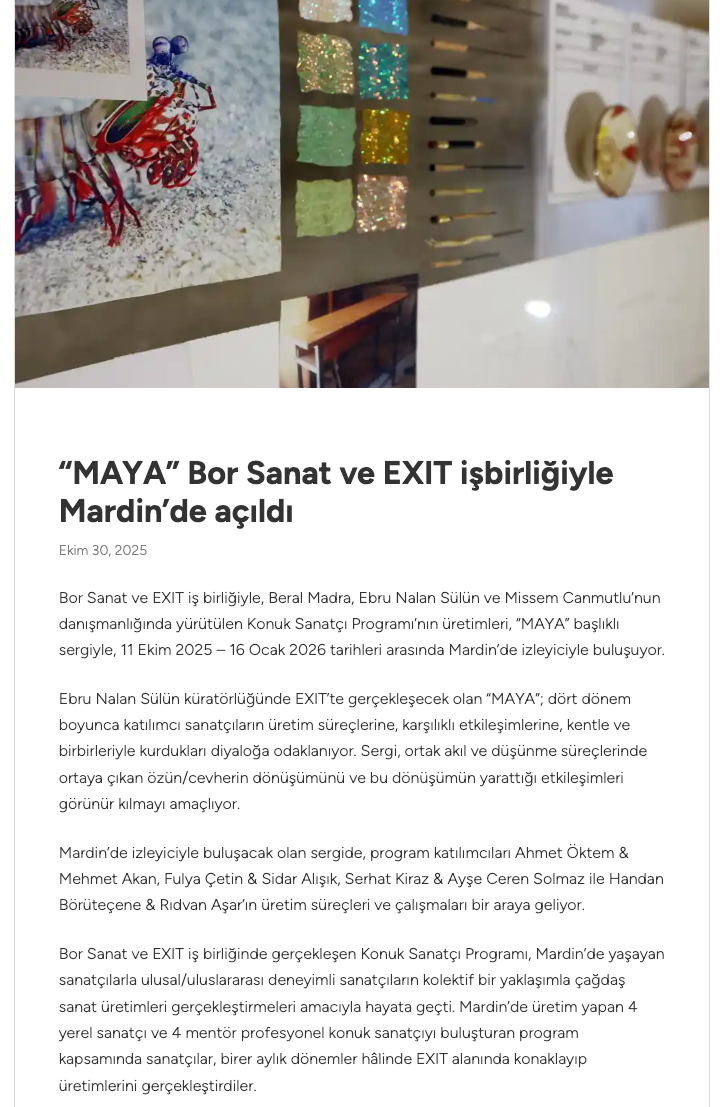 Eser Adı: Bor Sanat ve EXIT İş Birliğiyle “MAYA” Sergisi Mardin’de Kapılarını Açtı.