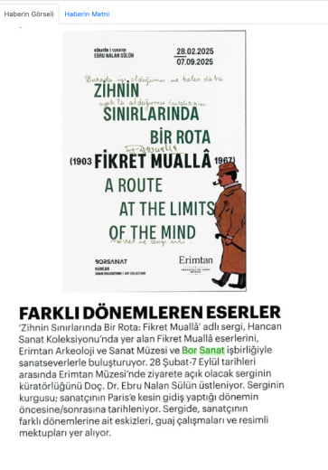 Eser Adı: Hancan Sanat Koleksiyonu’ndan Bir Seçki Sunan “Zihnin Sınırlarında Bir Rota: Fikret Muallâ” Sergisi 28 Şubat’ta Erimtan Arkeoloji ve Sanat Müzesi’nde Açılıyor