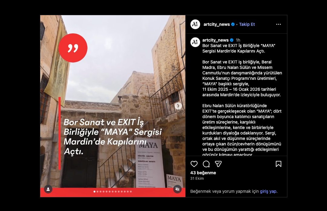 Boyut: MAYA” Bor Sanat ve EXIT İş Birliğinde 11 Ekim’de Mardin’de Ziyarete Açıldı