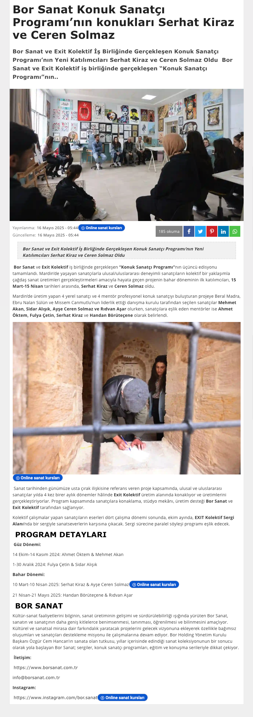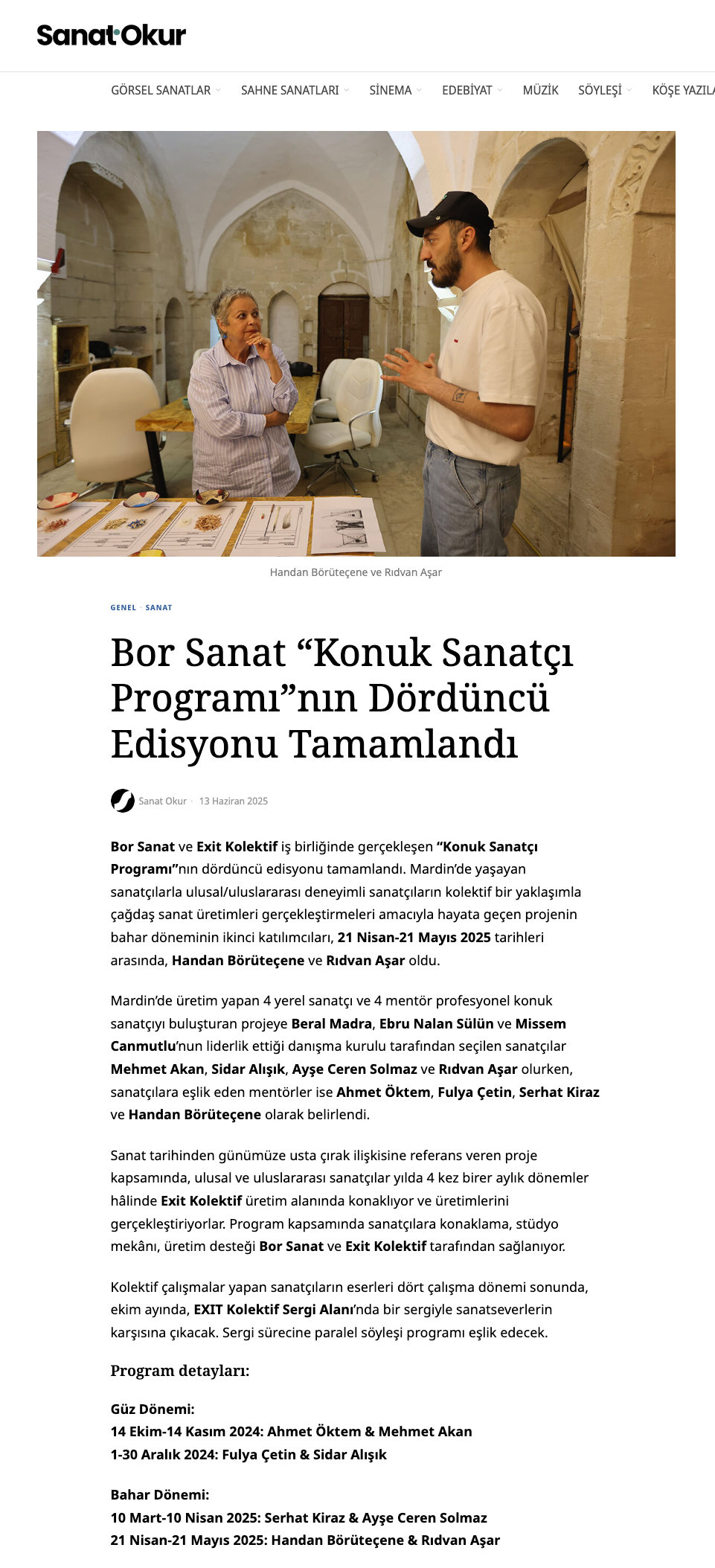 Eser Adı: Bor Sanat Konuk Sanatçı Programı Bahar Dönemi Tamamlandı