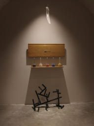 Ahmet Öktem& Mehmet Akan,Erdemli Bilgiler, 2024, 205 x 75 cm, kontra üzerine karışık gereç